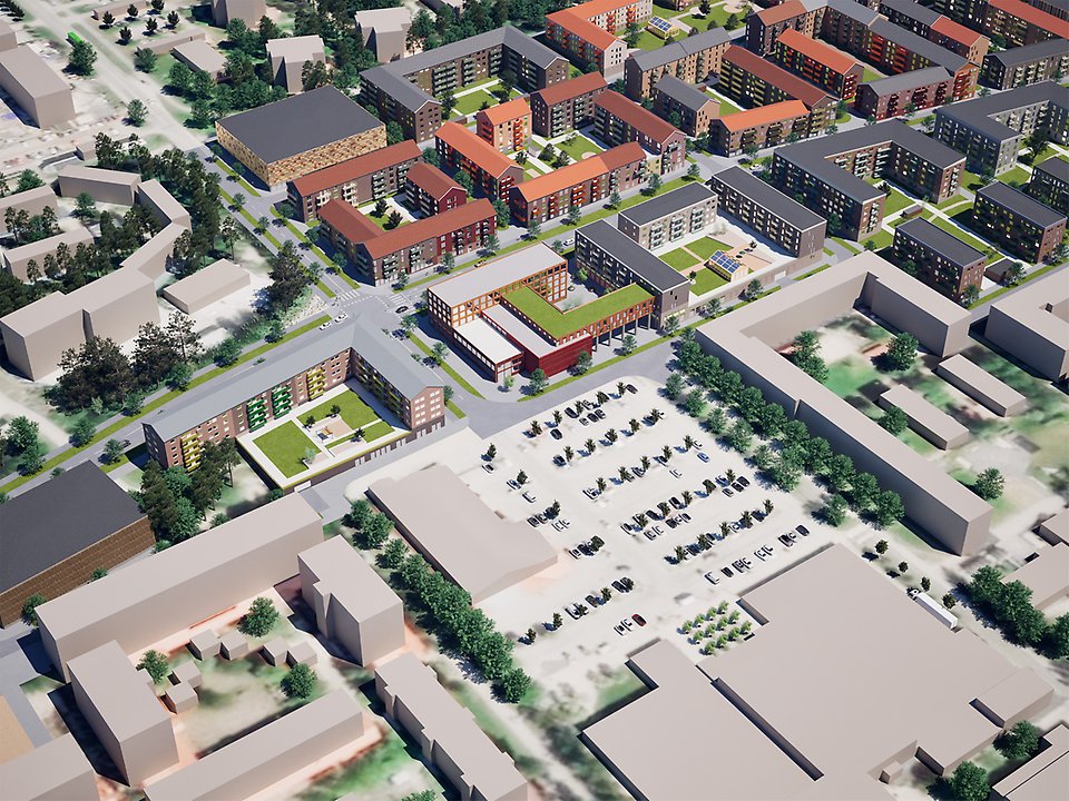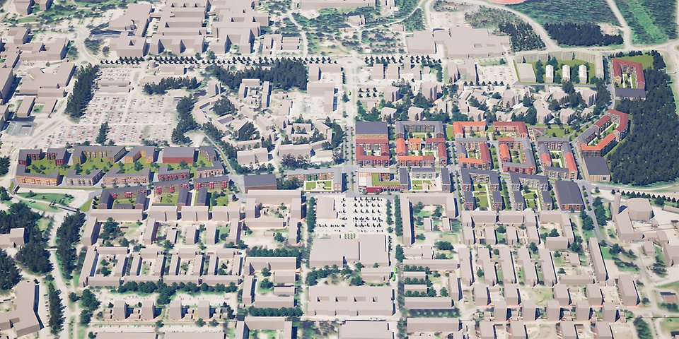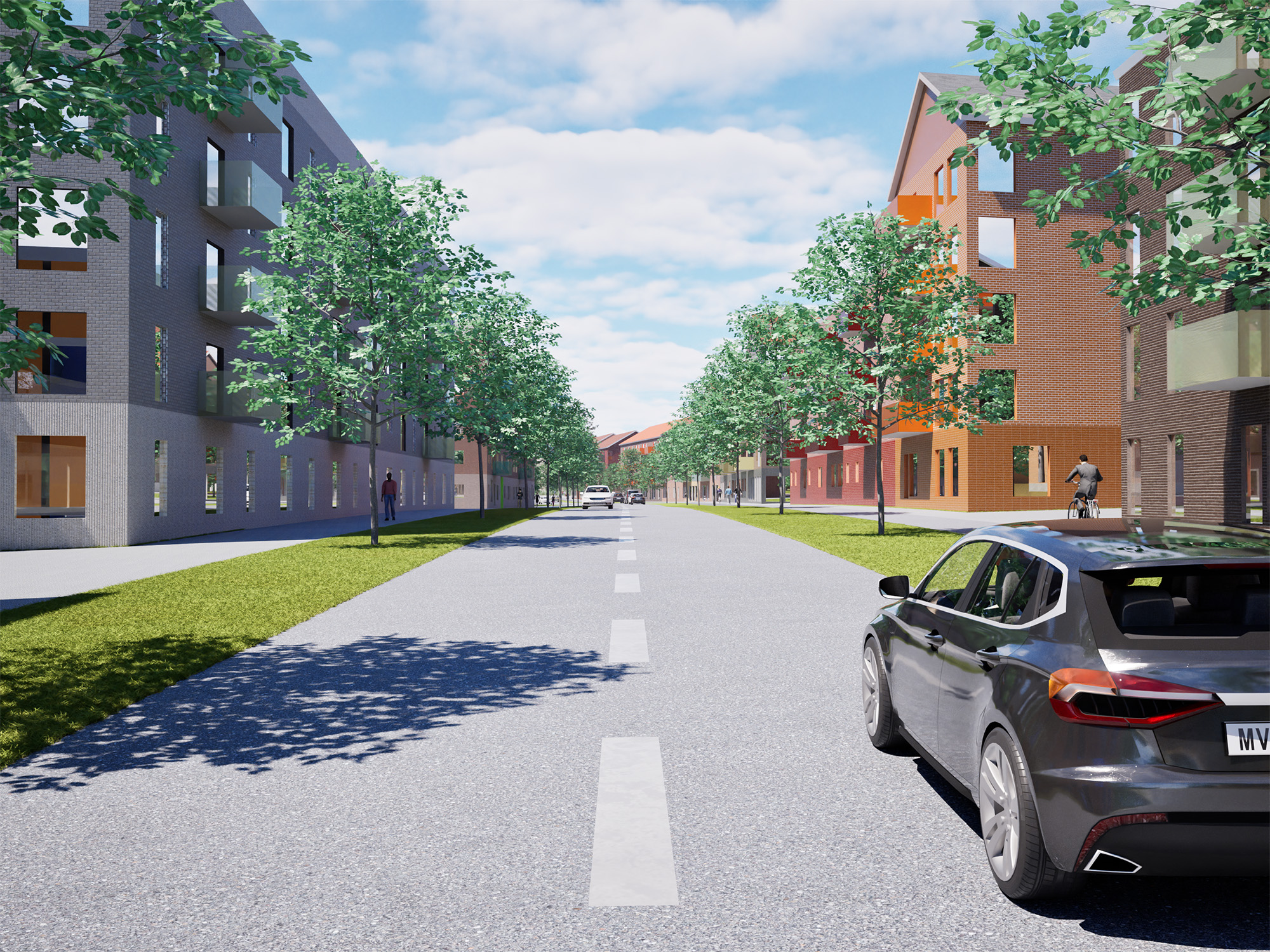 När Ålidbacken smalnas av frigörs ytor som idag är parkeringar, slänter och restytor. Här kan en sammanhängande kvartersstad växa fram. På båda sidor av gatan planeras kvarter i 4–6 våningar. Tillskottet av nya bostäder ger också underlag för service, kultur, utbildning och arbetsplatser. Totalt kan området rymma omkring 2 000 bostäder – ett viktigt tillskott till Umeås växande behov.