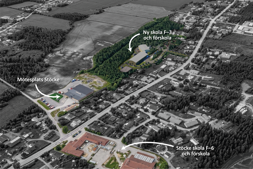 I Stöcke byggs en ny F–3-skola och förskola. Skolan får två paralleller med plats för totalt 200 elever och förskolan kommer rymma sex stycken avdelningar. Skolbyggnaderna byggs i två plan som binds samman med en länk.