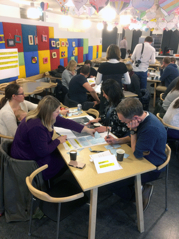 Drygt 40 personer kom till Idéforum 1. Det innehöll olika workshops där deltagarna samtalade och redovisade vilka platser man tycker om i Umeå, vad är viktigast för oss i framtidens Tomtebo, och vilka möjligheter Tomtebogård har.