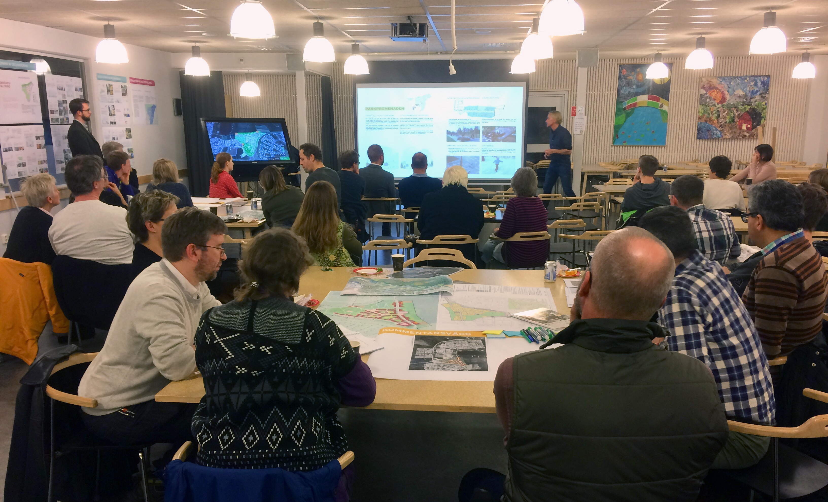 På idéforumet presenterades den visionsmanual som är resultatet av den långa delaktighetsprocess som ägt rum under året. Vi redovisade därefter planförslaget och hur den svarar upp mot visionsmanualen. Därefter vidtog frågor och diskussioner och insamling av synpunkter vid borden.