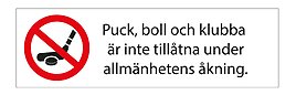 72. Förbud mot puck, boll och klubba. Slät plåtskylt 3000 x 900 millimeter.