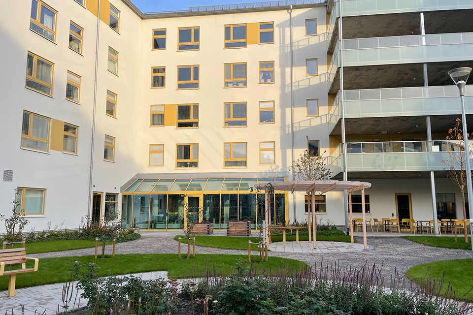 Nedan kan du se en video på några av Väst-Tegs gemensamma sällskapsytor, en oinredd lägenhet och innergården.
