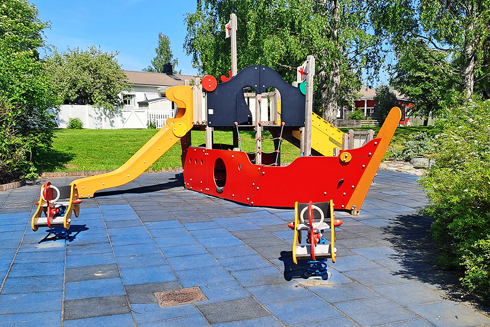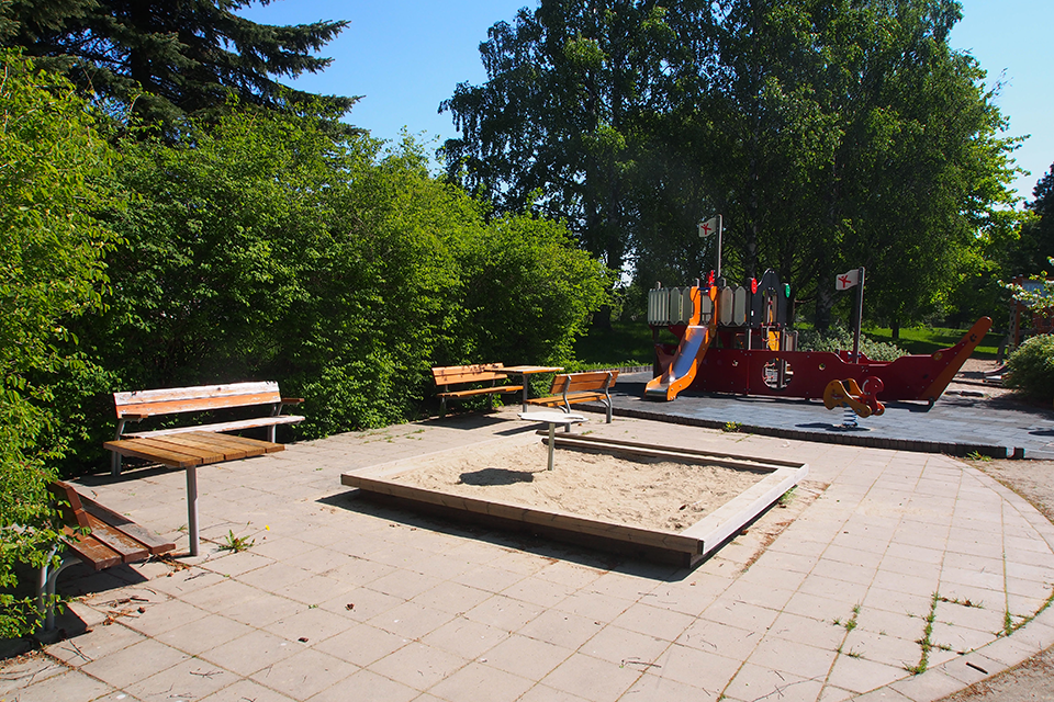 I stadsdelsparken finns lekutrustning i form av