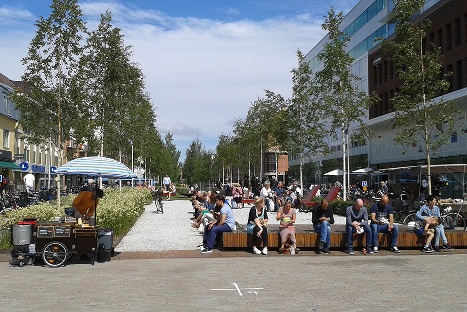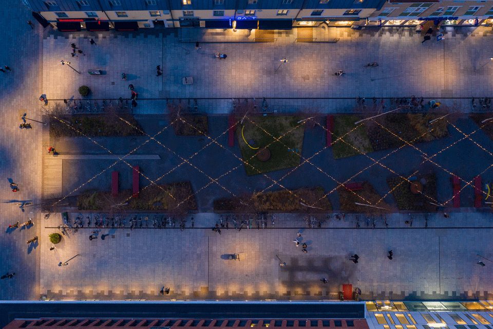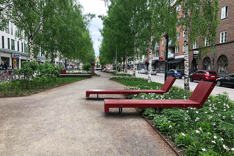 Att tydliggöra årstidväxlingar och att skapa användbarhet året om har varit viktiga mål. Perennplanteringar med en variation från tidig vår till sen höst tillsammans med ett intensivt vårflor och sprakande höstfärg ger ett föränderligt stadsrum. Belysningen bidrar dels till rumslighet och upplevelseden gröna delen men de 7 meter höga belysnings­masterna är också viktiga för att signalera paradgata.